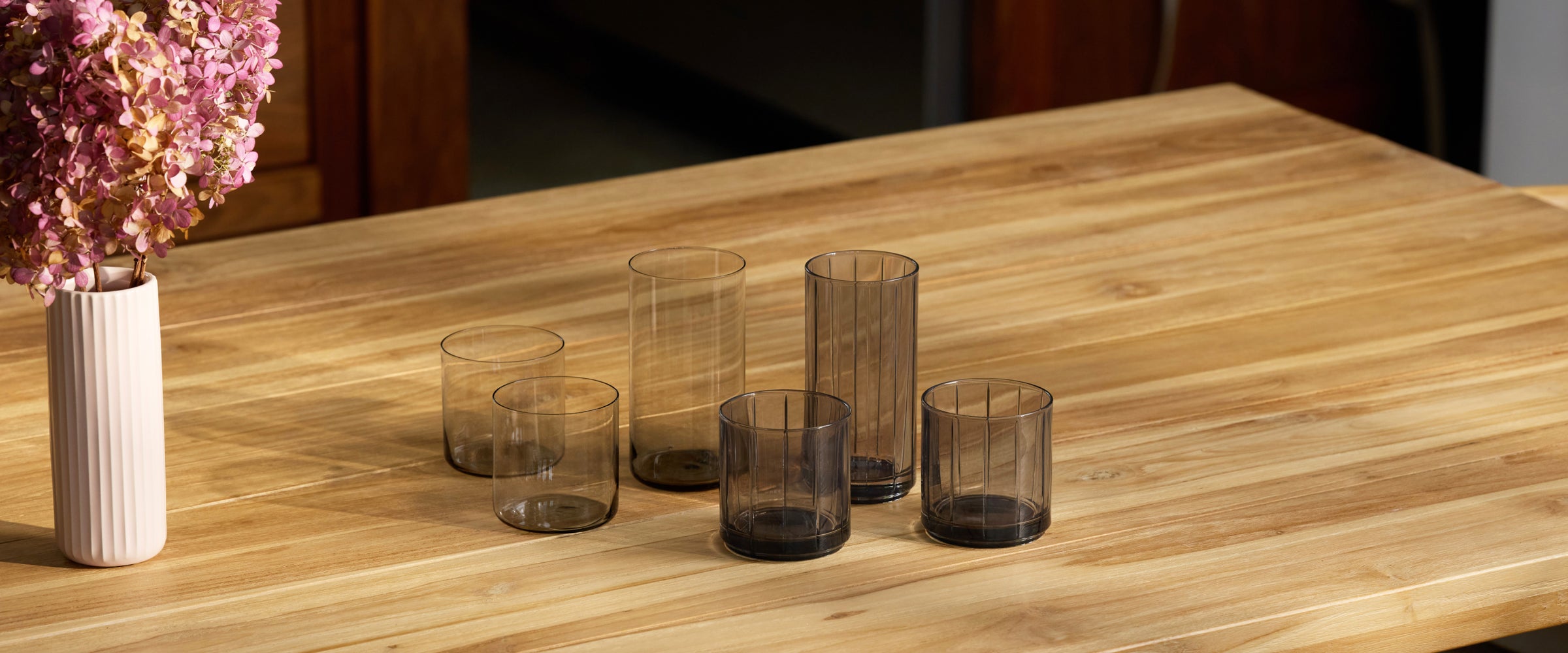 Tall glasses pro glassware by Fable Home, featured in a smokegray color finish. – #smokegray