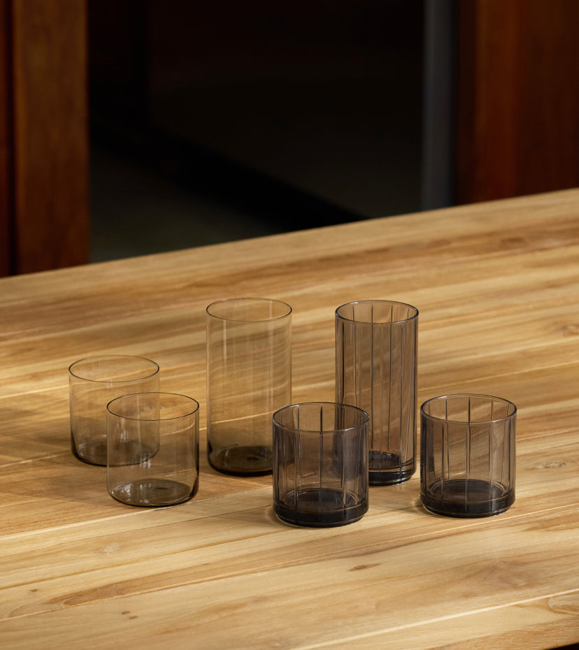 Cool, collected, and effortlessly moody—our signature glassware and crystal, now in a sultry new shade. With sleek silhouettes and a smoky tint, it adds a subtle edge to every pour.